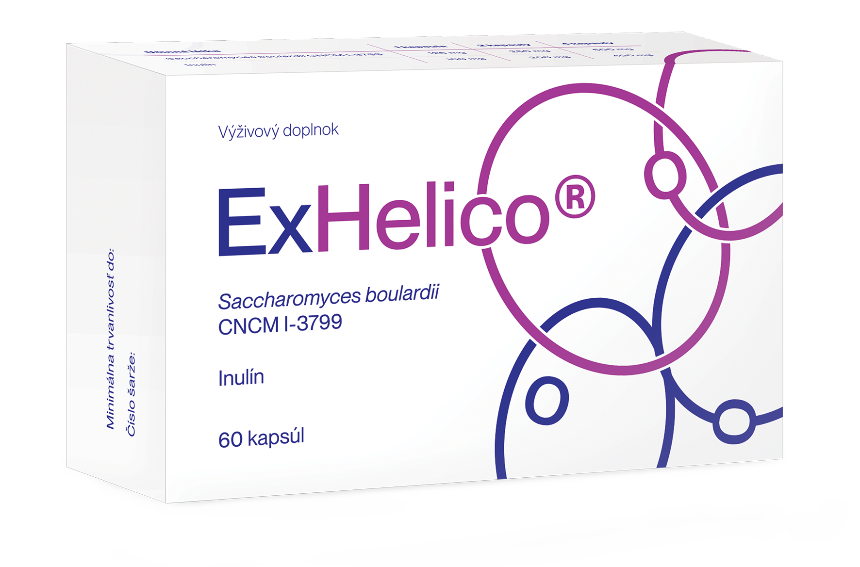 Výživový doplnok vo forme gastrorezistentných kapsúl určený pre dospelých a deti od 3 rokov. Jedna kapsula obsahuje 125 mg (2,5 x 109 CFU) Saccharomyces boulardii a 100 mg inulínu.