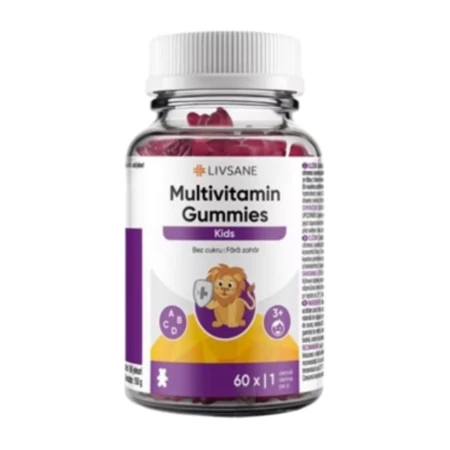 Sladidlá (maltitol, erytritol), želatína, vitamín C (kyselina L-askornová), regulátory kyslosti (kyselina citrónová, kyselina jablčná), želírujúca látka (agar), vitamín E (d-alfa-tokoferylacetát), prírodná jahodová príchuť, koncentrát šťavy z fialovej mrkvy, filmotvorná látka (karnaubský vosk, kokosový olej), vitamín B12 (kyanokobalamín), kyselina pantoténová (pantotenát vápenatý), vitamín A (retinylpalmitát), vitamín B6 (pyridoxínhydrochlorid), vitamín D3 (cholekalciferol), kyselina listová, biotín, jodid draselný, inozitol, citrát zinočnatý. Bez lepku a laktózy.